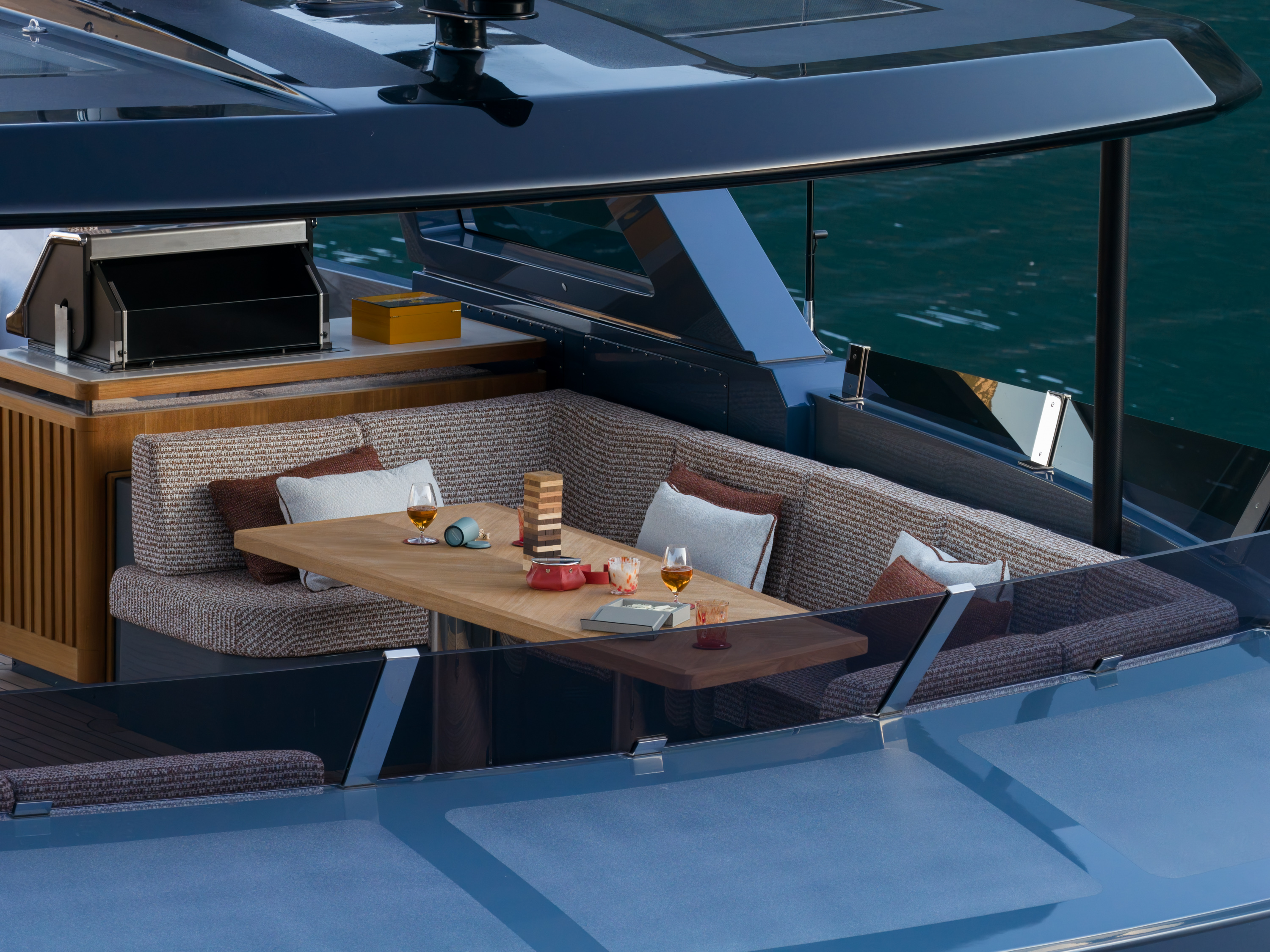 Lawson Robb were tasked by a long standing client to design the interior and manage some choice exterior refinements to his second motor yacht Haze II. Whilst an experienced owner, the previous yachting lifestyle had been centered around fairer climates, with his standalone travel taking him further afield, he wanted a yacht that could do the same. We were tasked with making refinements from the Exterior Design to the Interior layout and fully custom interior. The client’s aspirations for the interior were for it to allow for flexibility, create intimate areas and those suitable for entertaining and remote working. The look and feel should fit into and be functional within any environment. A large focus on detailing was desired with a particular emphasis on ceiling details amongst other things in terms of the design structure, a muted palette was to be set off using colour pops and the subtle use of specialist finishes to create moments of surprise in the design scheme. All in all what was essentially required was a functional interior where the interior detailing could be measured against yachts of a much larger size.