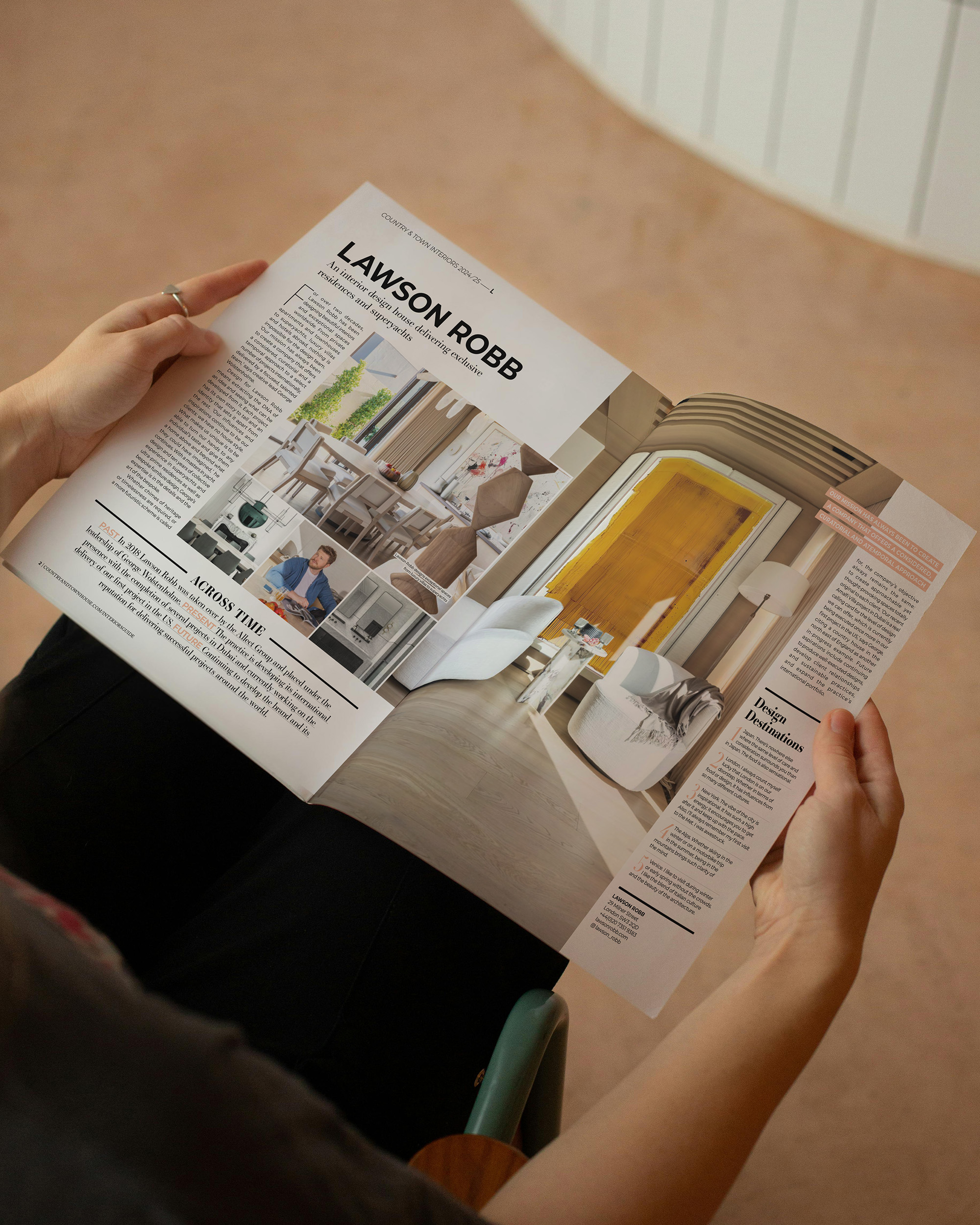 The article reads:For over two decades, Lawson Robb has been designing beautiful interiors and exceptional spaces worldwide. From private apartments and townhouses to superyachts, luxury villas and hotels abroad, nothing is impossible for the design team.‘Our mission has always been to create a company that offers a considered, curatorial and atemporal approach to a select number of projects internationally, delivered by a focused, talented team,’ says creative lead George Wolstenholme.Design for Lawson Robb means extracting the DNA of an idea and seeing what can bedeveloped from it. Each project has its own story to tell and an identity that sets it apart from the rest. ‘Our influences and inspirations continue to be our clients: we have no house style. What makes us unique is to be able to turn our hands to any individual’s taste and give them a home above and beyond what they could have imagined,’ he continues. With a masters in yacht design and ten years of collective experience in superyachts and ultra-prime residences as well as bespoke furniture design, George’s expertise is in the details and the art of the bespoke.