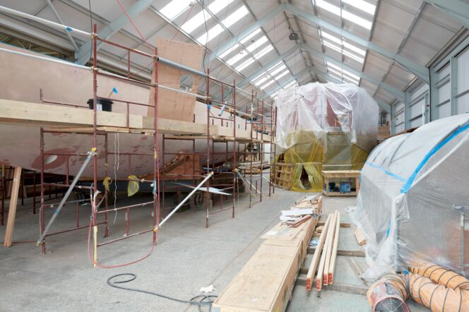 The reclaimed warehouse where Spirit’s 40-strong workforce craft the world’s best wooden-hulled boats was once used to industrially store flour. Every time you knocked a beam, McMillan tells me, a shower of flour would fall from the ceiling. Today, it is clouds of sawdust that fill the space, thrown into the air by tools manual and electric.The boatyard is buzzing with activity. A large mezzanine platform in the centre of the space allows the workers to nimbly navigate the sprawling network of scaffolded walkways that connect Spirit’s three ongoing projects. The largest of these, the beginnings of a 111-foot sailing yacht, sits upturned in the centre of the floor like a vast wooden skeleton – and is destined to become the brand’s biggest build to date.